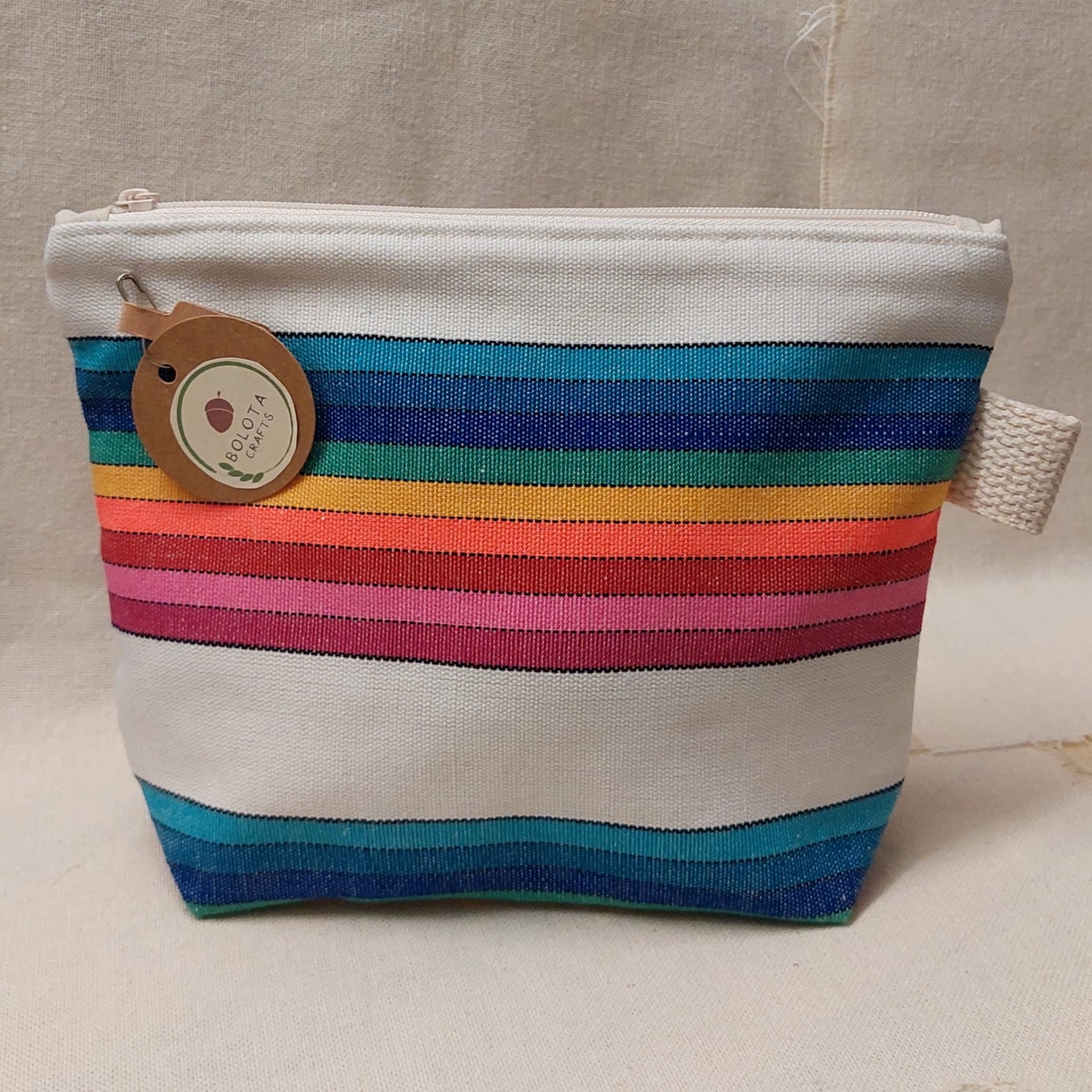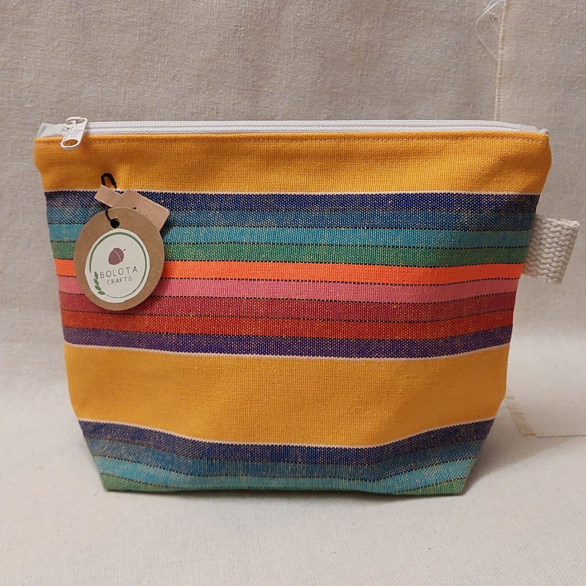 O necessaire é criado com algodão resistente e tem um design simples e prático. O fundo largo permite que seja espaçoso e tem um fecho para garantir a segurança dos objetos. Tem um forro interior que lhe dá maior durabilidade.